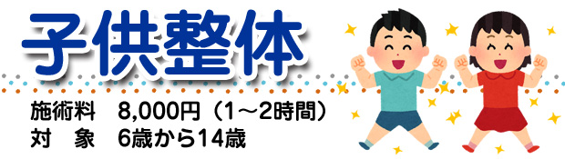 また、保護者の方にできるお子様の癒し方や体操もお教えいたします。1~2回の施術で良くしていきたいので、保護者の方の同伴をお願いいたします。