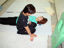 8.逆に捻る。もう一度開脚させると柔ら かくなっている。