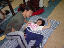 4.写真のように両膝を胸につけるように 屈曲させる。胃経になる。この固さを憶えて。